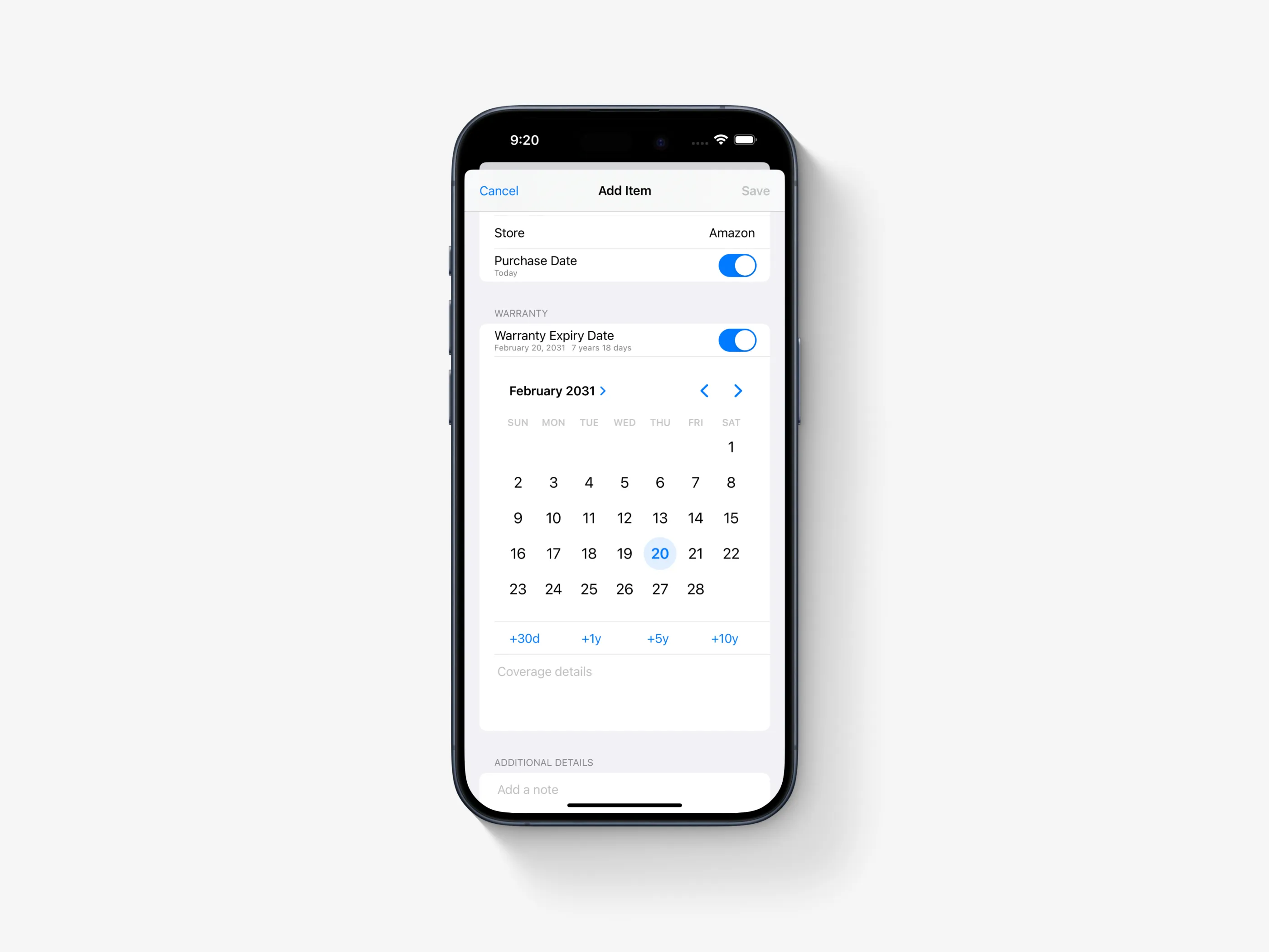 Warranties showcases my expertise in iOS app development and design. This self-created app transforms warranty management, offering features like real-time notifications, a clean interface, and comprehensive document management.